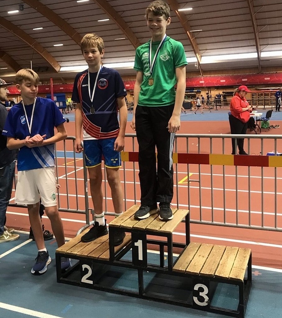 Ossian tog trippla medaljer. Brons i 60m, silver i längdhopp och guld i höjdhopp!
